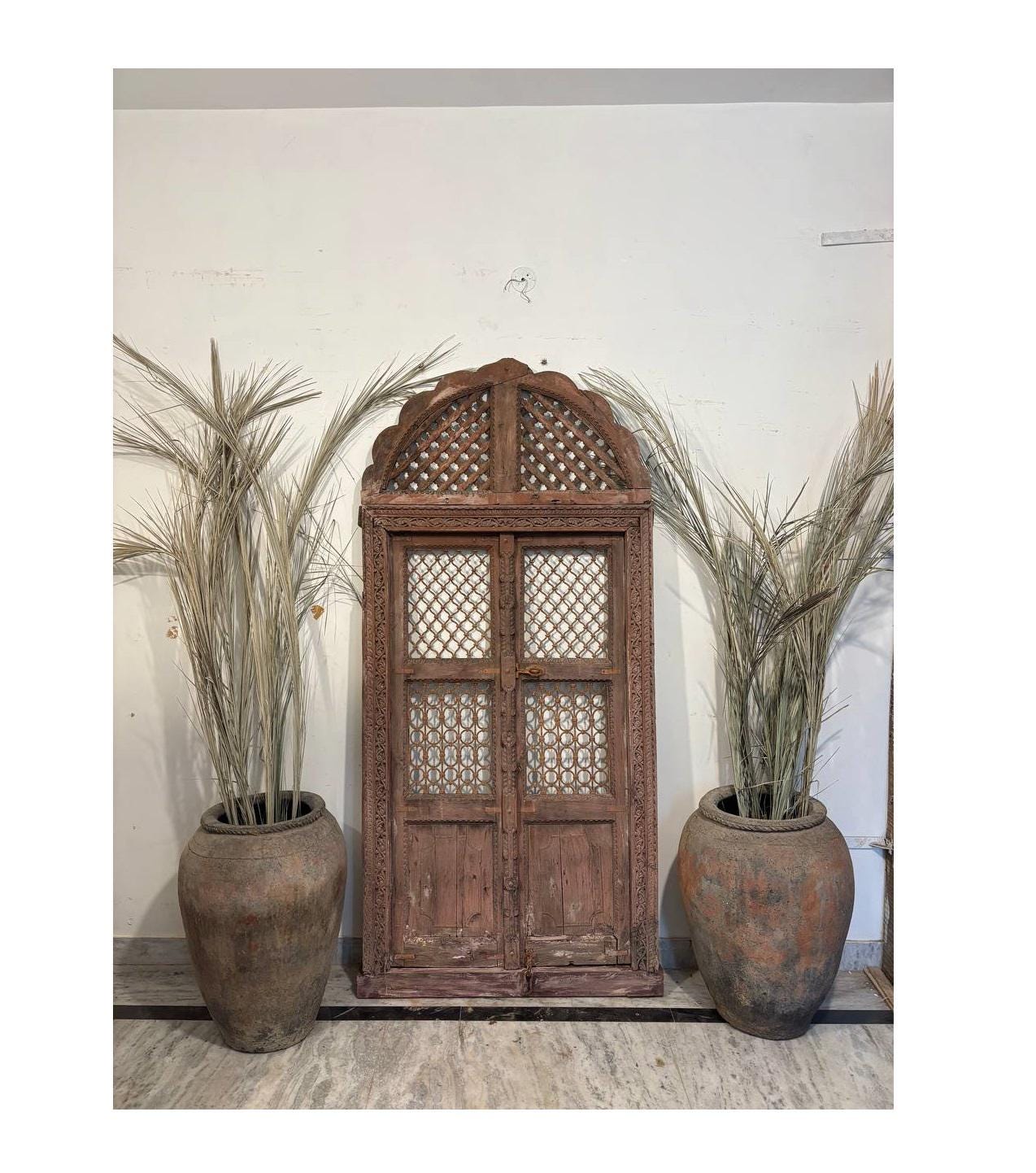 Bring timeless charm to your home with these Old Wooden Arch Shape Jali Doors, handcrafted in India. Made from solid aged teak, these doors feature intricate jali (lattice) carvings, reflecting traditional Indian craftsmanship. With their natural patina and rustic finish, they make a stunning statement as wall art, room dividers, headboards, or entryway decor. Each piece is unique, bearing the marks of time and skilled hands. Perfect for boho, farmhouse, or global-style interiors.