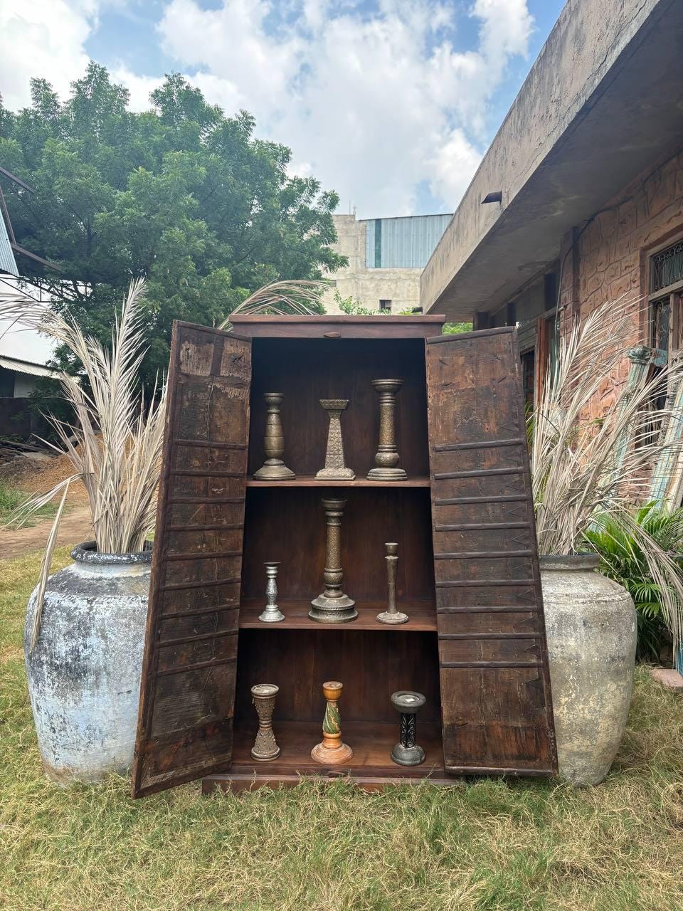 Bring timeless elegance to your home with this Handcrafted Wooden Almirah with Brass Embossed Doors. This stunning storage cabinet showcases intricate brass work on the doors, beautifully set within a solid wood frame, reflecting traditional Indian craftsmanship. Perfect as a statement furniture piece, it can be used in living rooms, bedrooms, or hallways to store essentials while elevating your décor. The unique brass detailing adds vintage charm and regal appeal, making it ideal for both classic and contemporary interiors. Its sturdy construction ensures durability, while the antique-inspired design highlights cultural artistry. Use it as a wardrobe, cabinet, or decorative almirah to add character to your home. A true heirloom piece, this brass almirah blends functionality with art, making it a perfect choice for collectors and home décor enthusiasts.