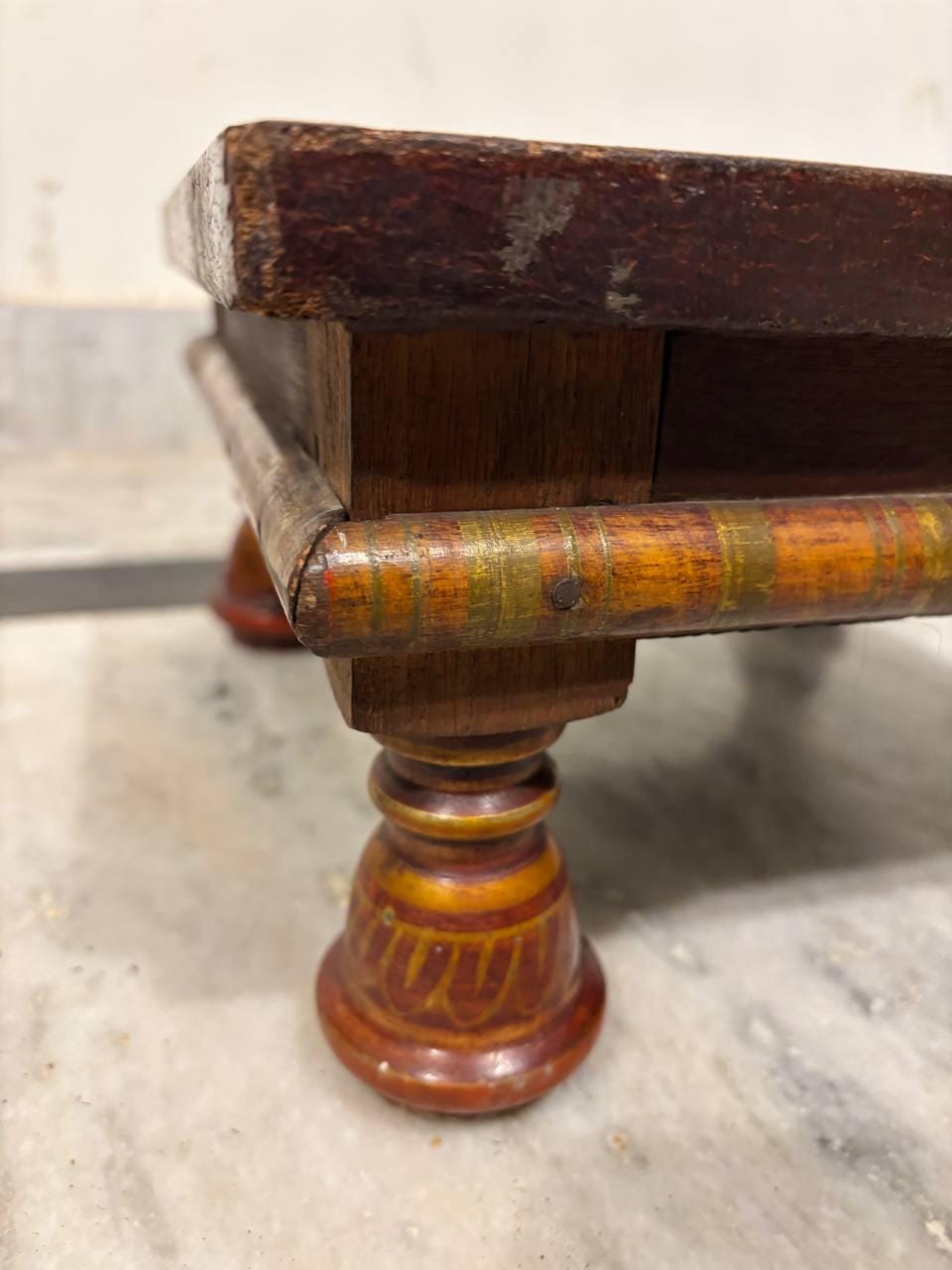 Handmade Indian Chowki Bajot: Painted Wood Low Table (15x30x30 cm)
