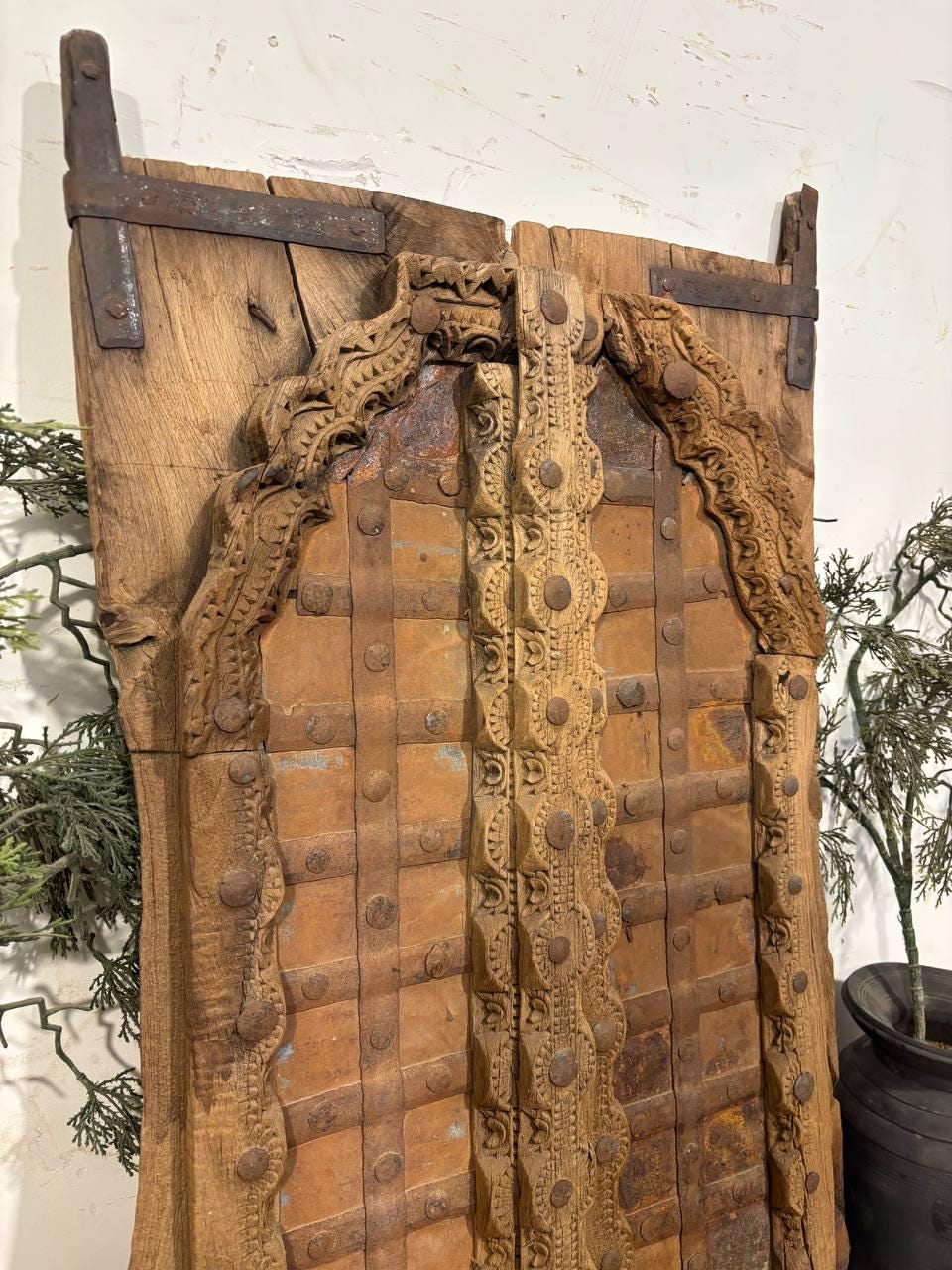 Bring a piece of Rajasthan’s rich heritage into your home with this antique Shekhawati wooden window. Expertly hand-carved, this old haveli window frame features intricate traditional Indian motifs and weathered charm, making it a striking statement piece. Each window is a unique architectural salvage item, showcasing centuries-old craftsmanship from Shekhawati's vibrant culture. Use it as wall art, a mirror frame, or a boho-style décor accent. A perfect blend of history and rustic elegance for your living room, entryway, or patio. Material: Solid reclaimed wood Origin: Shekhawati, Rajasthan, India L * H * W= 83 * 51 * 4 cm.